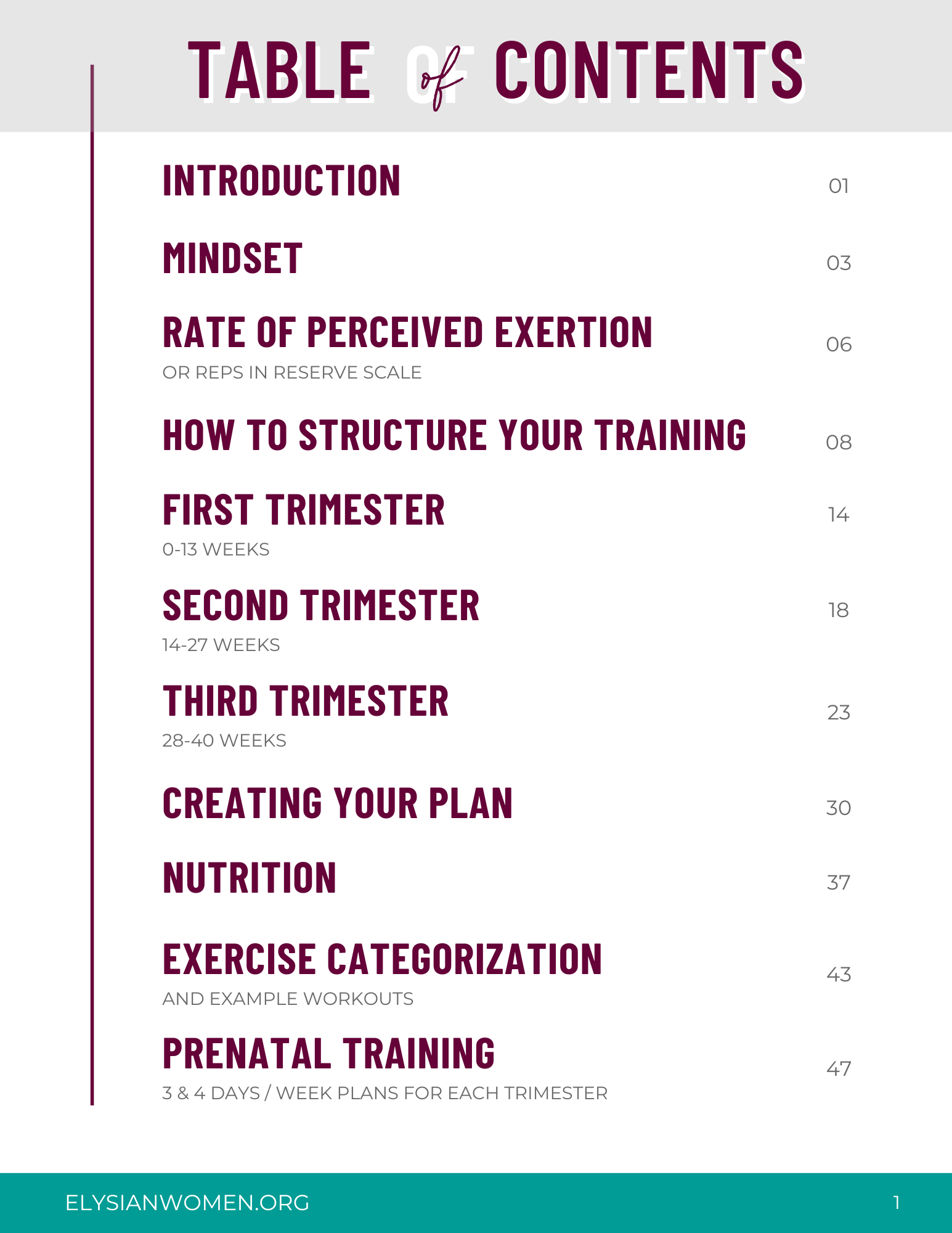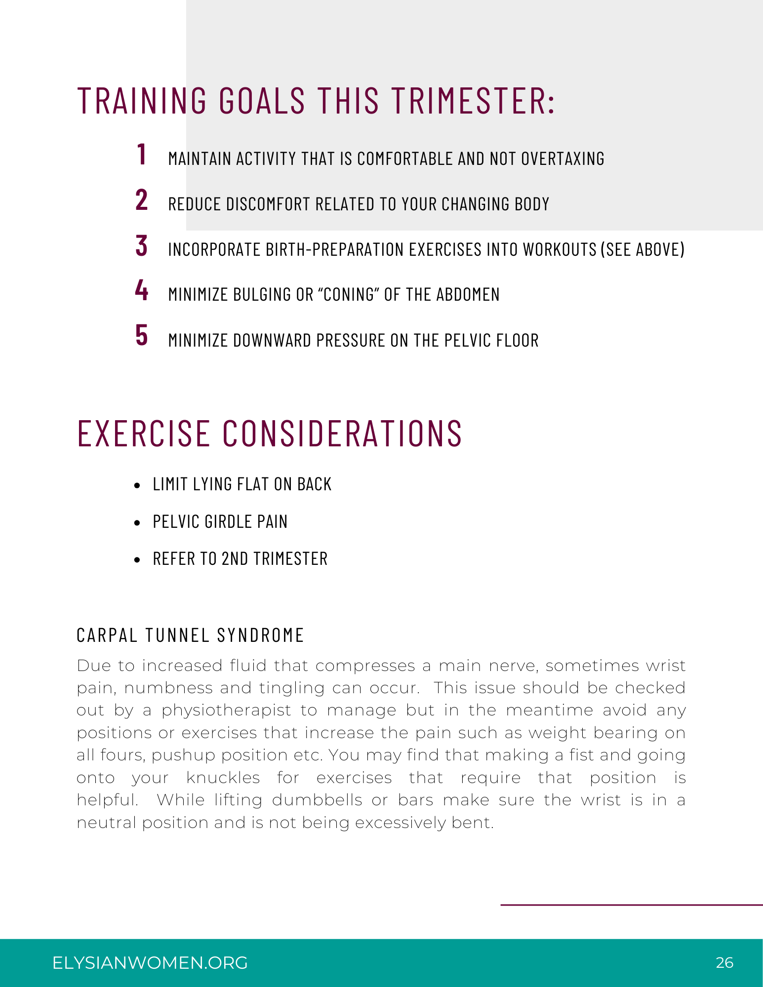 • Links to instructional videos for 100+ “pregnancy safe” exercises